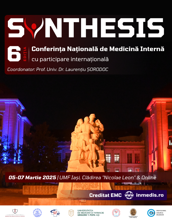 Am deosebita plăcere să vă invit la cea de-a șasea ediție a Conferinței Naționale de Medicină Internă „SYNTHESIS”, ce va avea loc la Iași, în perioada 5-7 martie 2025. Lucrările științifice se vor desfășura în format fizic în cadrul Universității de Medicină și Farmacie „Grigore T. Popa” Iași, dar vor beneficia și de transmisia online.